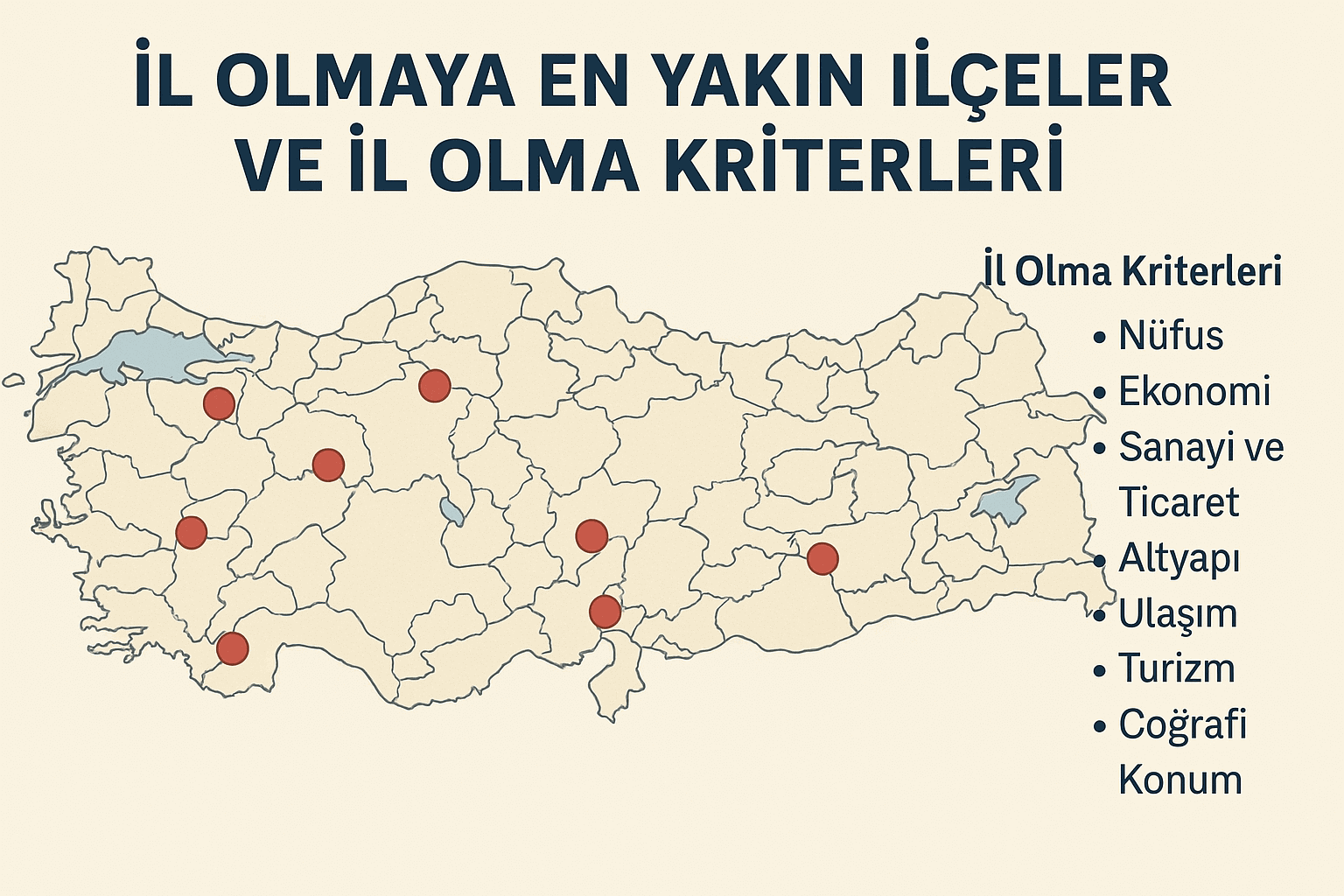 Bir ilçenin il statüsüne kavuşabilmesi için tek bir ölçüt yeterli değildir. Devletin değerlendirme sürecinde hem mevcut durum hem de geleceğe dönük potansiyel dikkate alınır. Öne çıkan temel kriterler şunlardır: