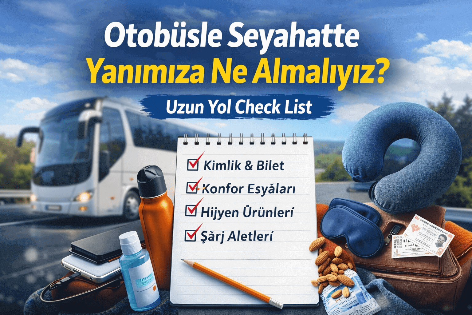 Bu rehberde, uzun yol otobüs yolculuğu için gerekli eşyalar, konfor artıran küçük detaylar ve yolculuğu daha keyifli hale getiren ipuçlarını adım adım bir check list halinde bulacaksınız.